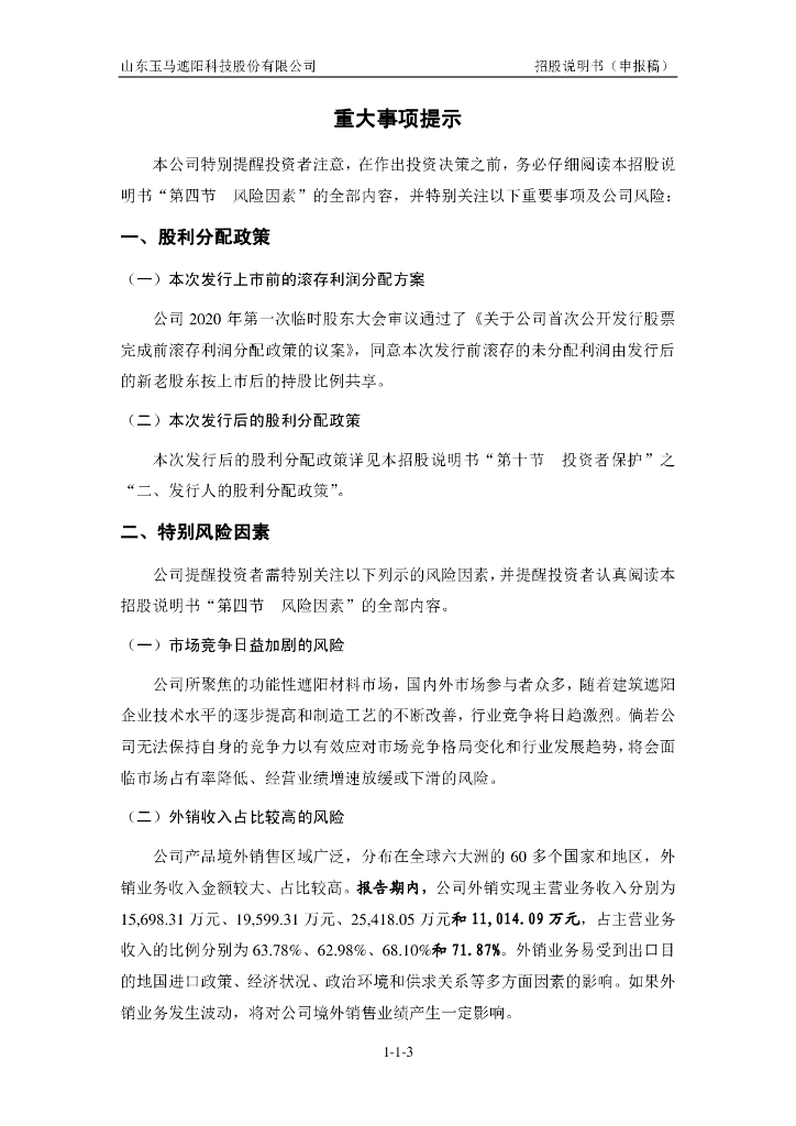 山东玉马遮阳科技股份有限公司深交所创业板IPO上市招股说明书.pdf