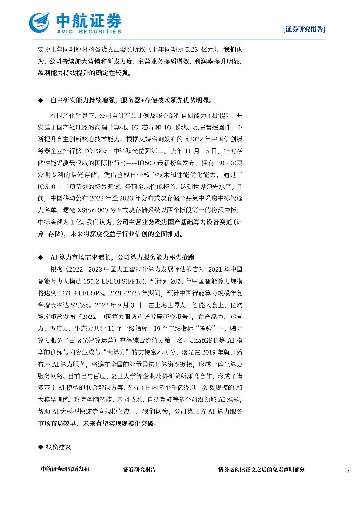 中航证券:中科曙光(603019)-2022年报点评:算力赛道显魅力,盈利能力快速提升.pdf