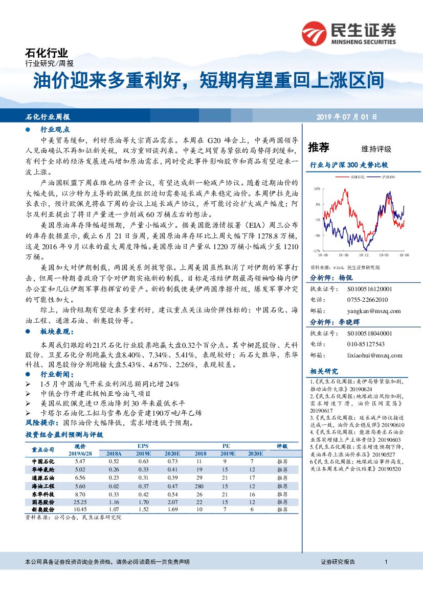 民生证券:石化行业周报:油价迎来多重利好,短期有望重回上涨区间.pdf