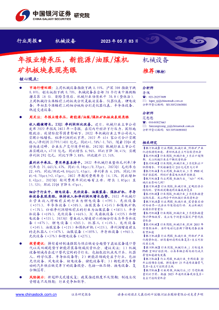 中国银河:机械设备行业周报:年报业绩承压,新能源/油服/煤机矿机板块表现亮眼.pdf
