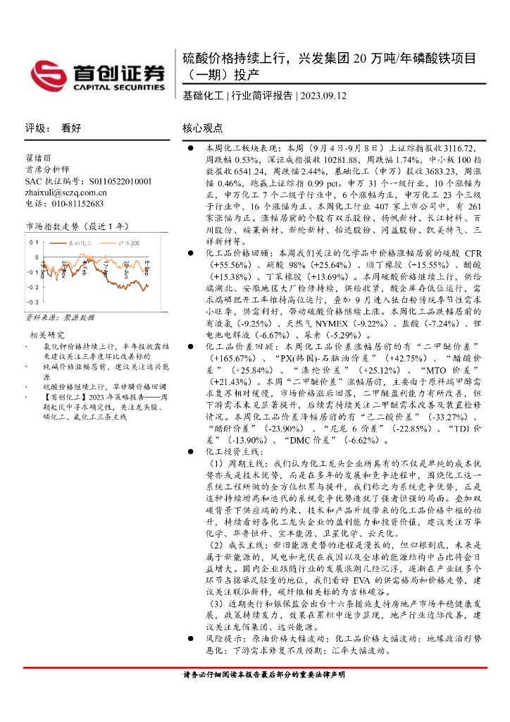 首创证券:基础化工行业简评报告:硫酸价格持续上行,兴发集团20万吨/年磷酸铁项目(一期)投产.pdf
