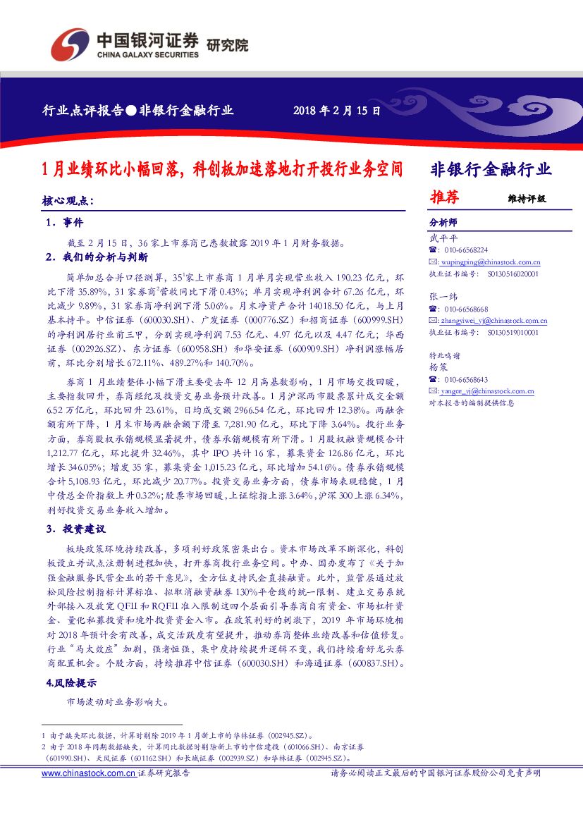 中国银河:非银行金融行业 :1月业绩环比小幅回落,科创板加速落地打开投行业务空间.pdf