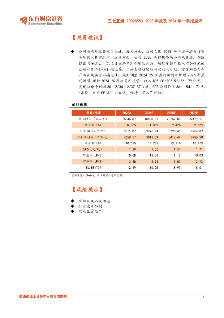 东方财富证券:三七互娱(002555)-2023年报及2024年一季报点评:静待利润释放,分红提振信心.pdf