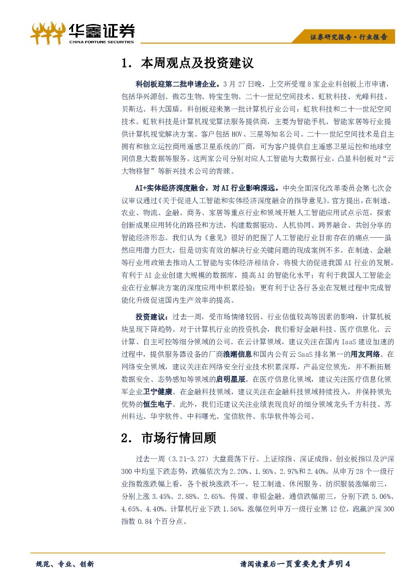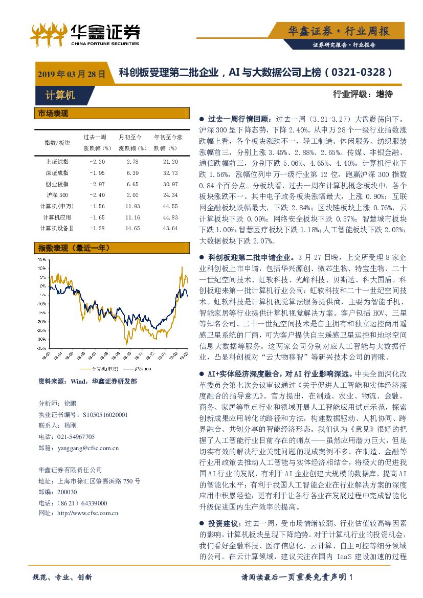 华鑫证券:计算机行业周报:科创板受理第二批企业,AI与大数据公司上榜.pdf