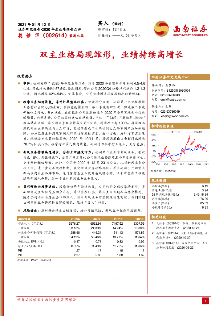 西南证券:奥佳华(002614)-双主业格局现雏形,业绩持续高增长.pdf