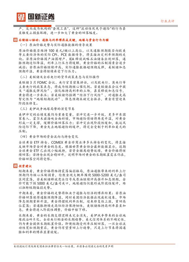 国新证券股份:有色金属行业:原油暴涨推升通胀压制降息预期,黄金金融属性占优引发回落.pdf