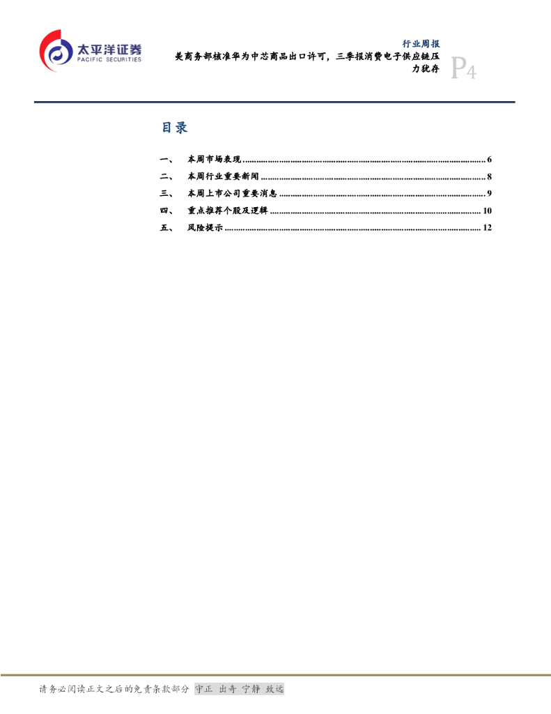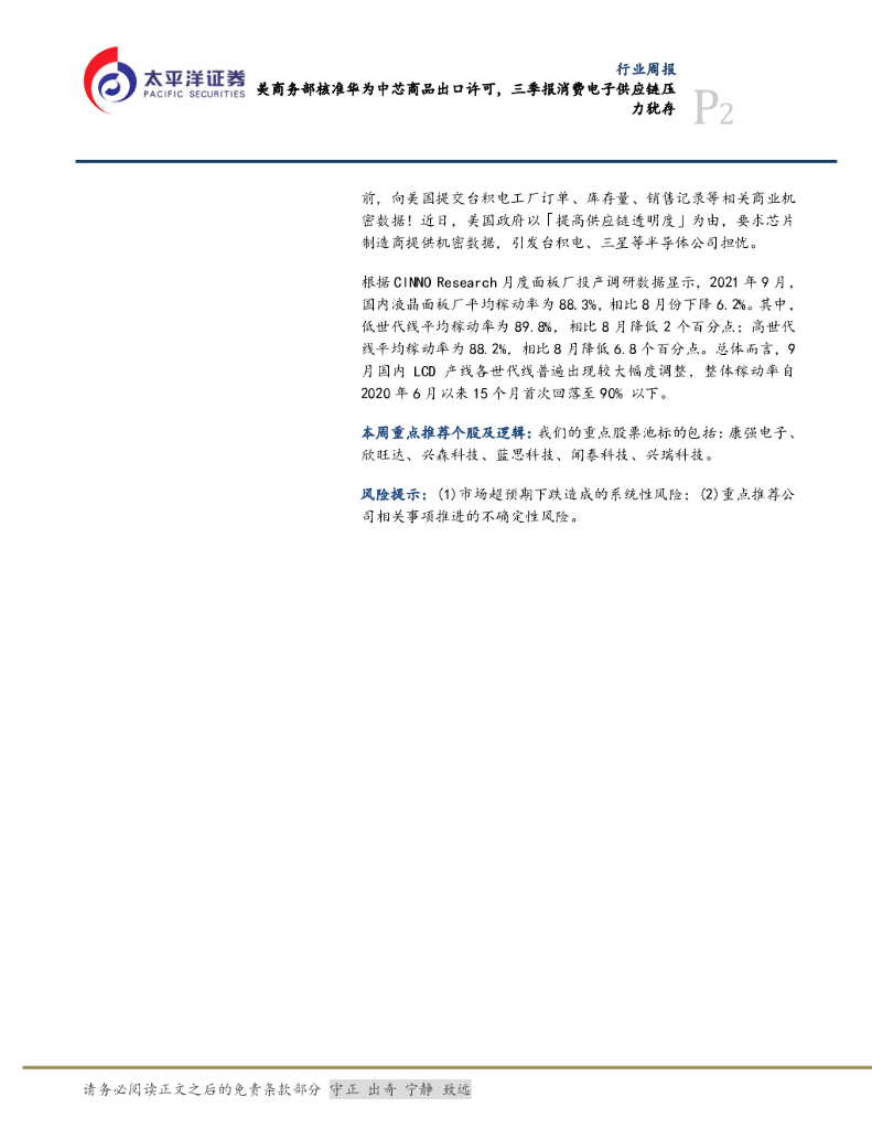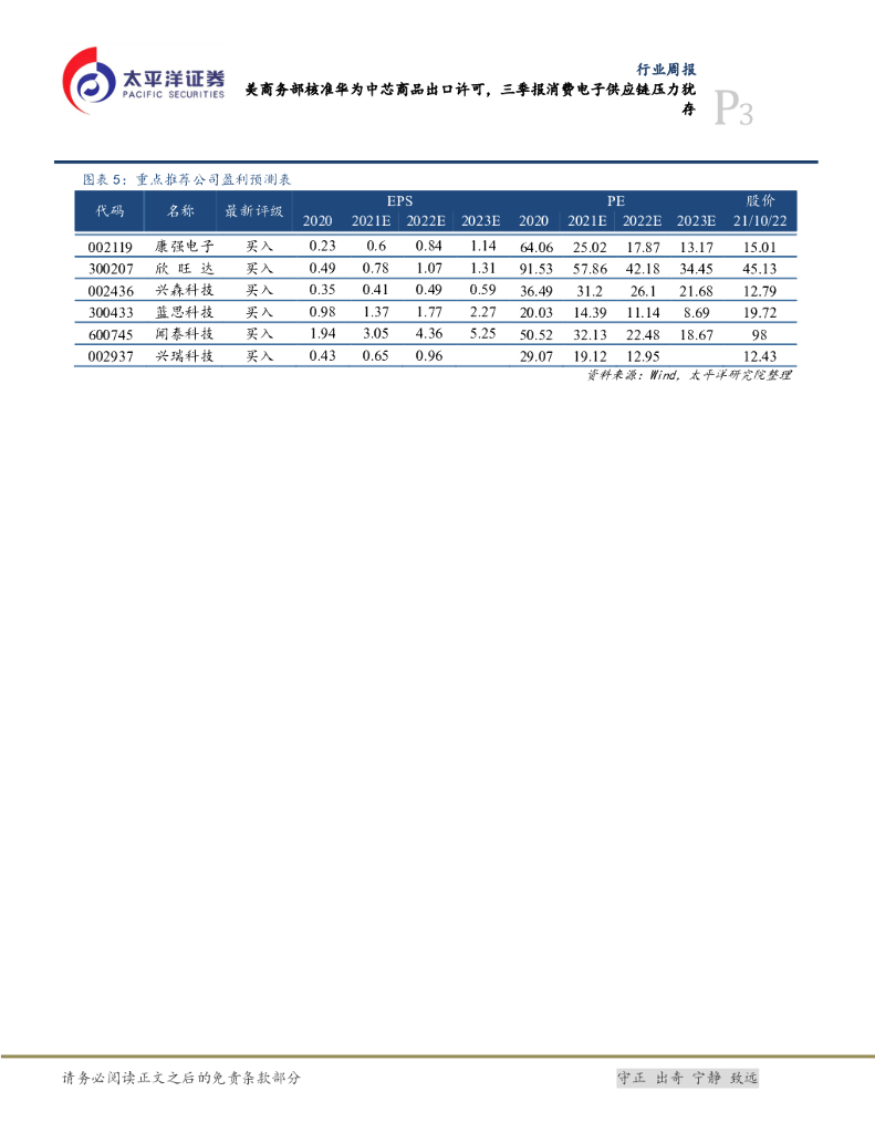 太平洋证券:电子行业周报:美商务部核准华为中芯商品出口许可,三季报消费电子供应链压力犹存.pdf