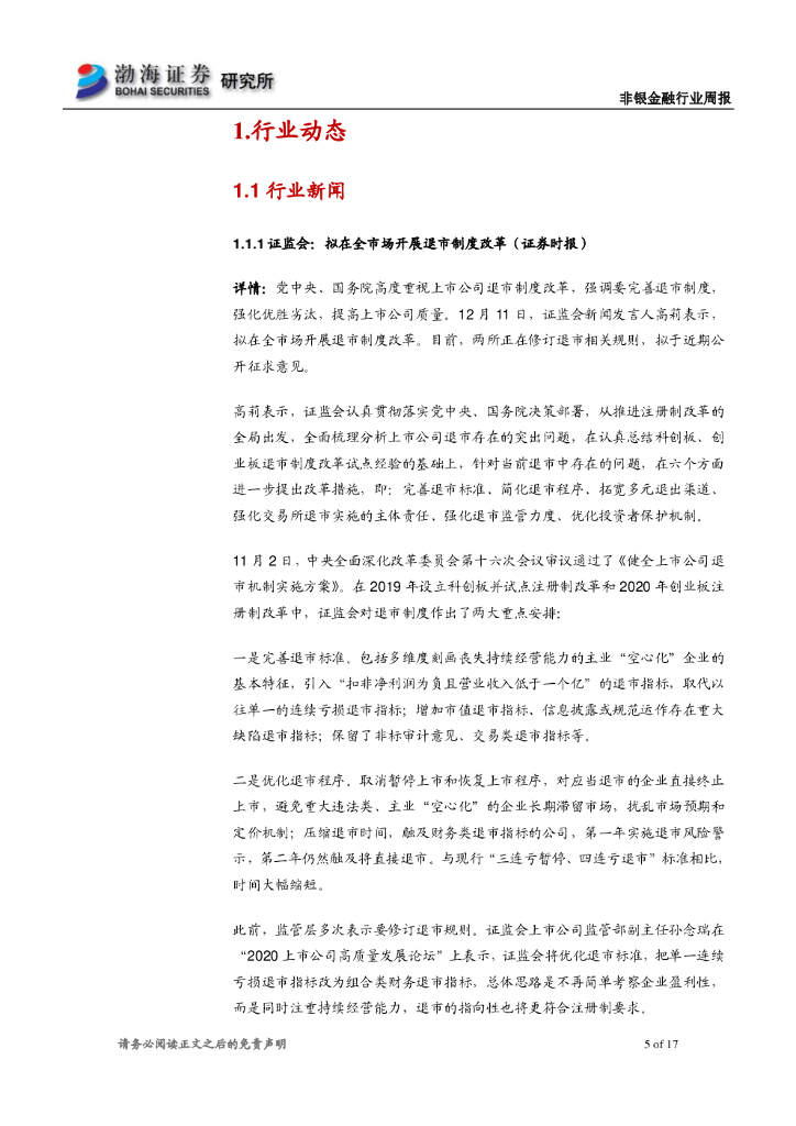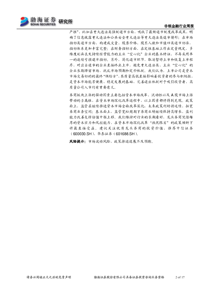 渤海证券:非银金融行业周报:退市规则修订在即,有助提升资本市场投融资效率.pdf