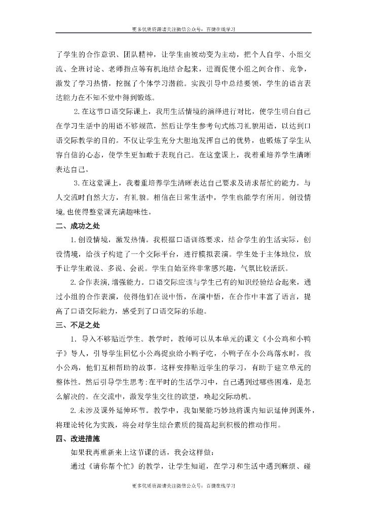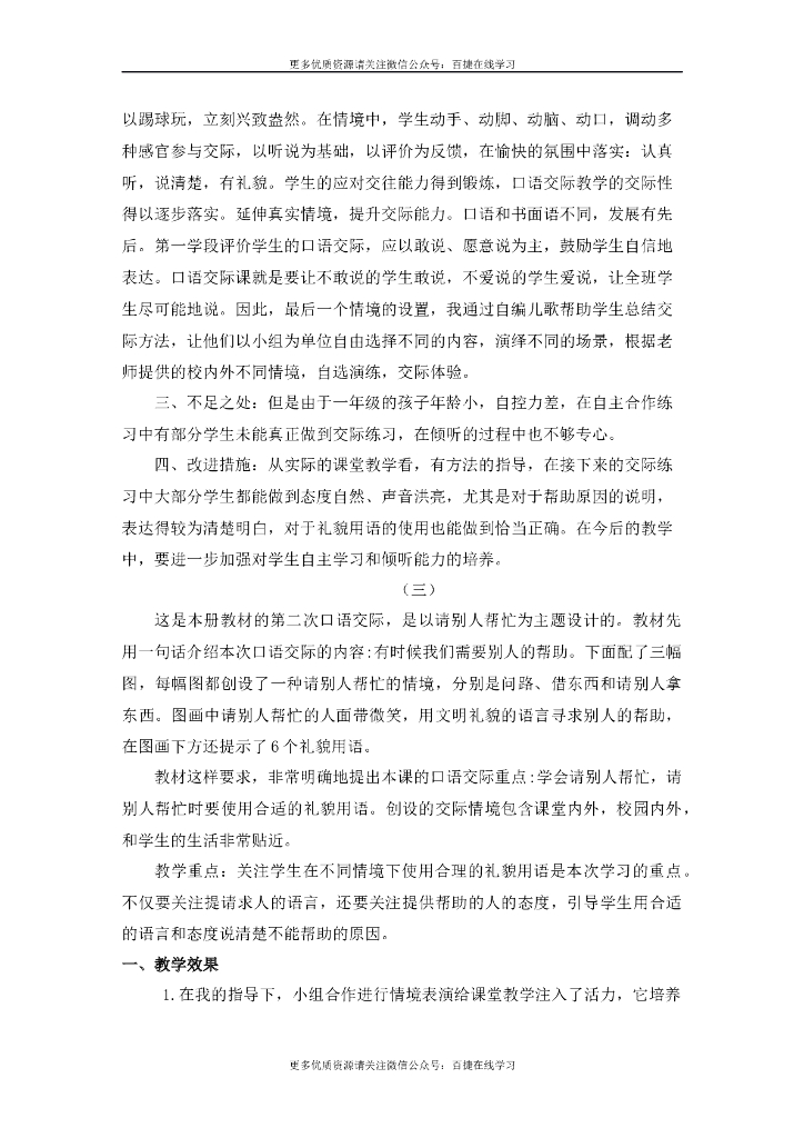 一年级语文下册口语交际:请你帮个忙 教学反思.doc