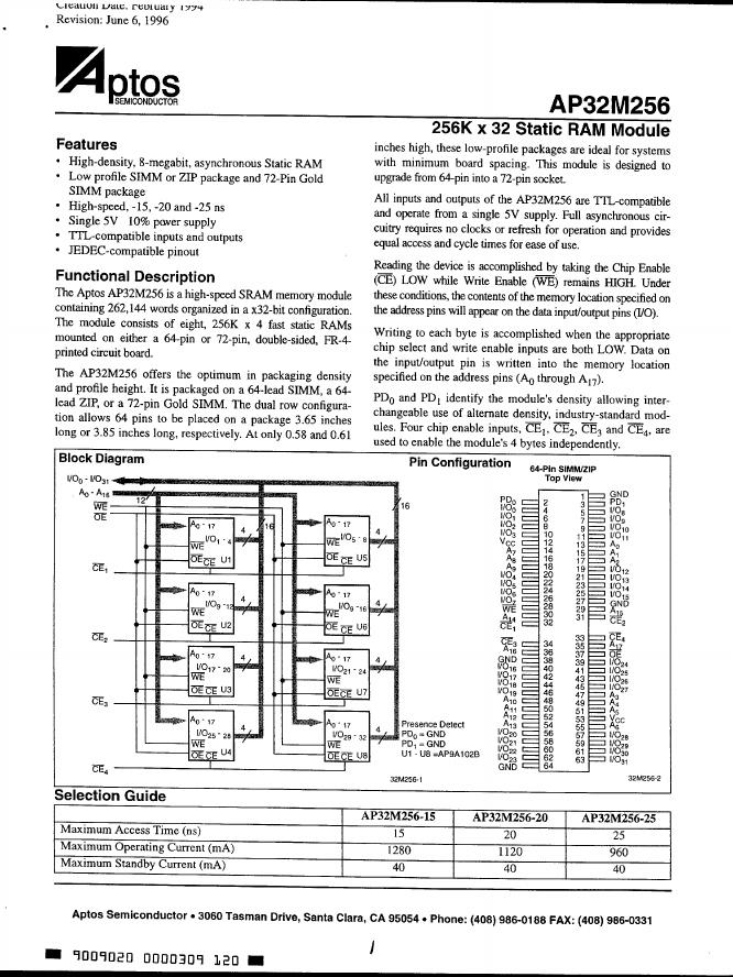 Aptos Semiconductor AP32M256 数据手册.pdf