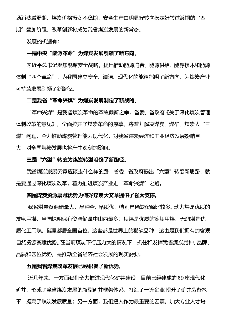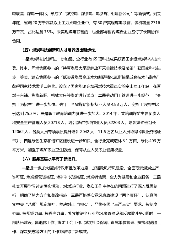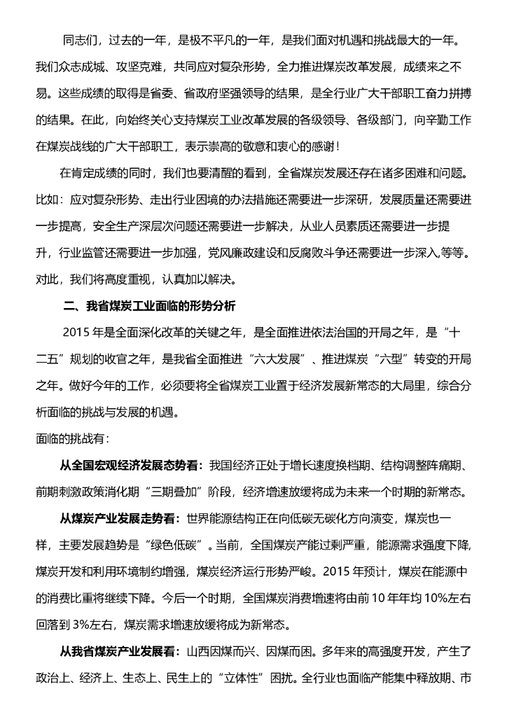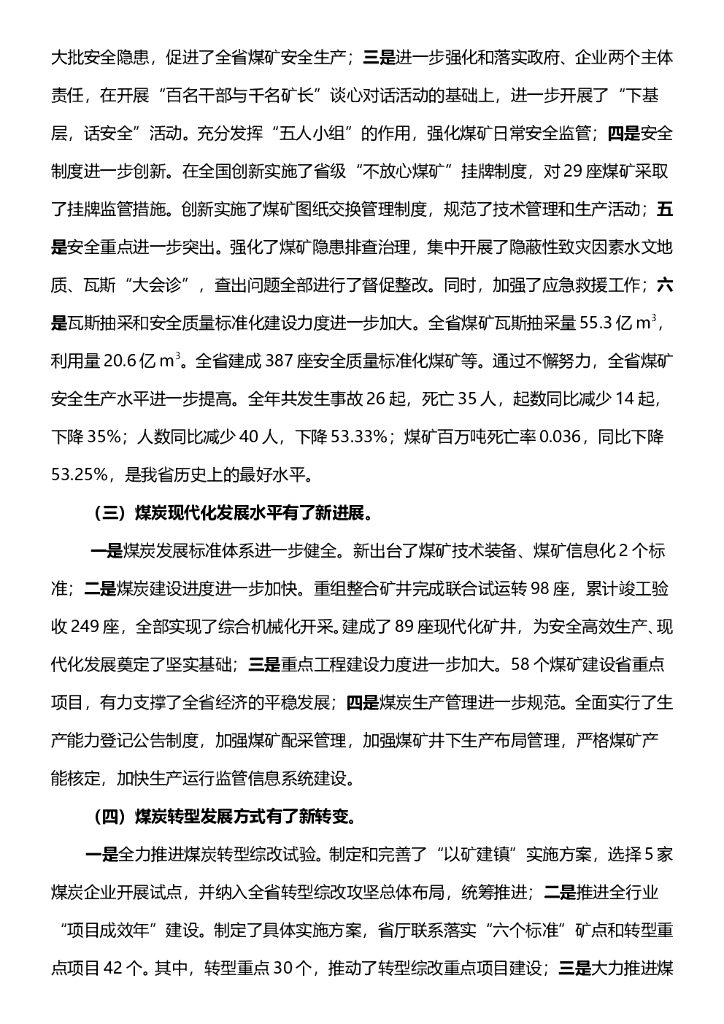 全省煤炭工作报告内容.doc