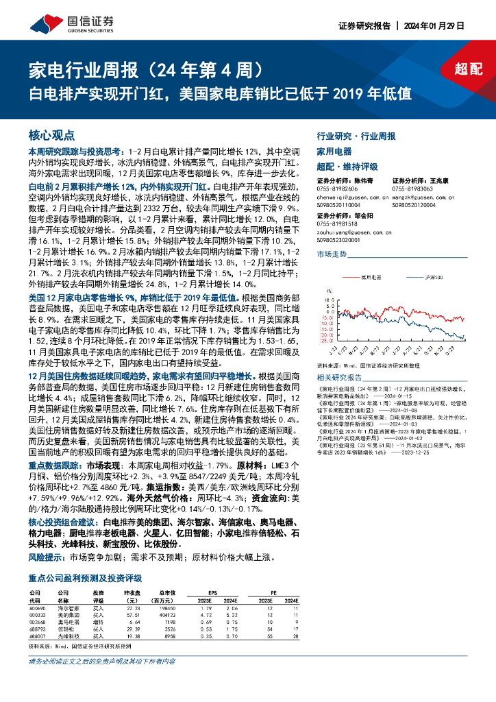 国信证券:家电行业周报(24年第4周):白电排产实现开门红,美国家电库销比已低于2019年低值.pdf