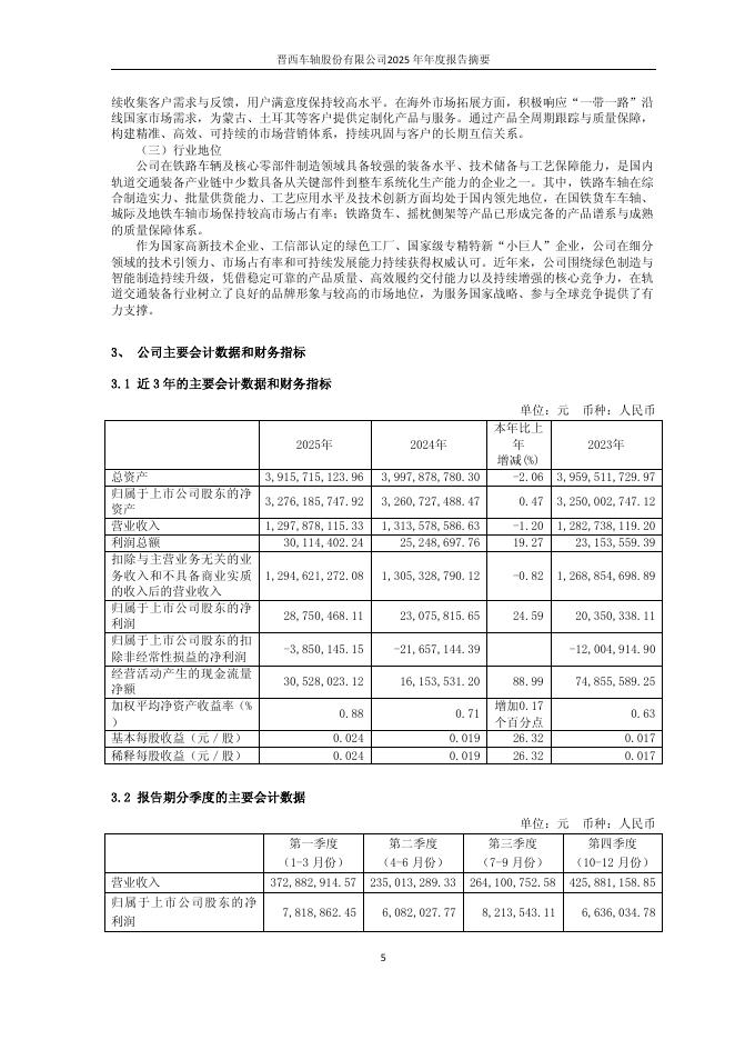600495-晋西车轴:晋西车轴2025年年度报告摘要.pdf