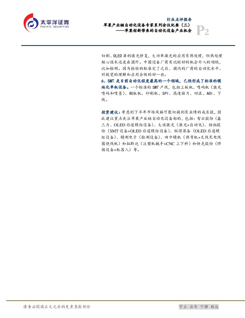 太平洋证券:机械设备:苹果产业链自动化设备专家系列会议纪要(三)-苹果创新带来的自动化设备产业机会.pdf