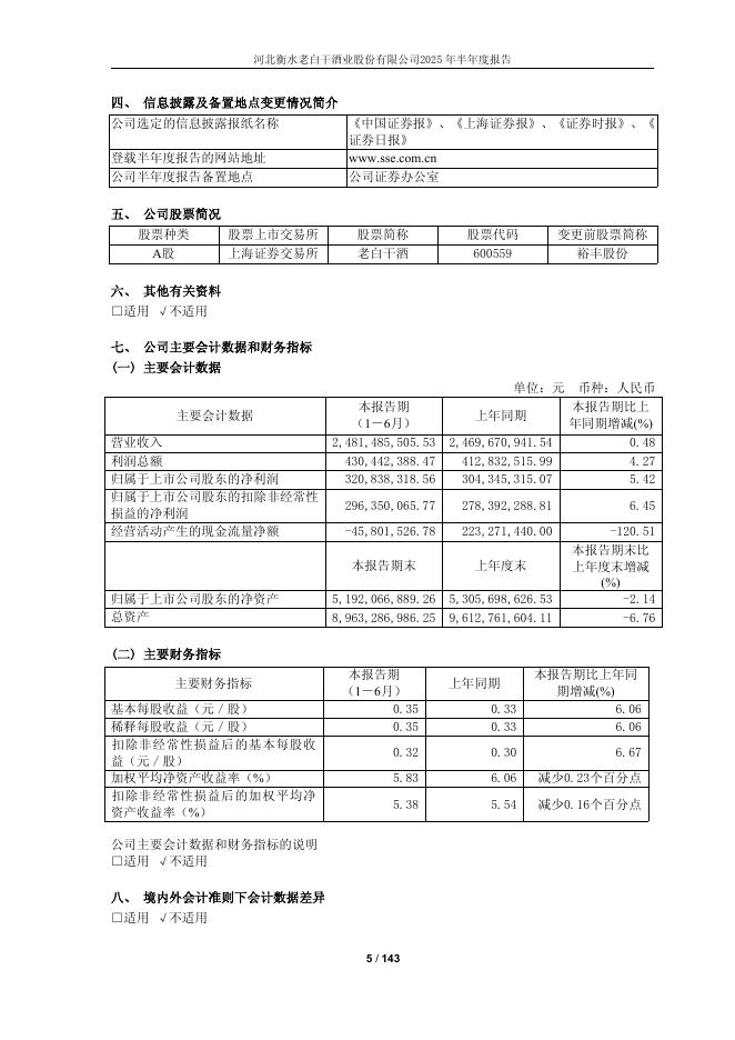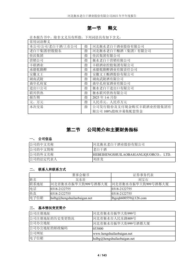 600559-老白干酒:河北衡水老白干酒业股份有限公司2025年半年度报告.pdf