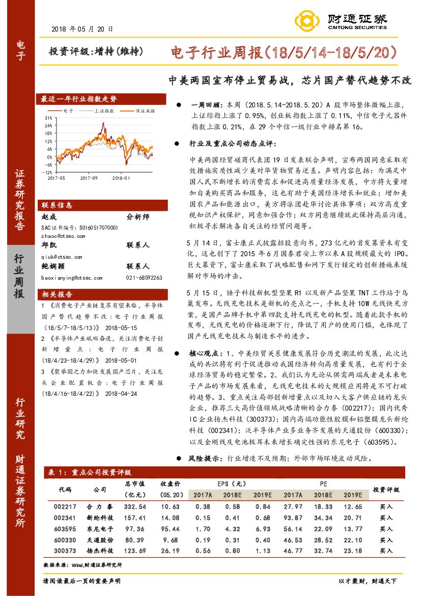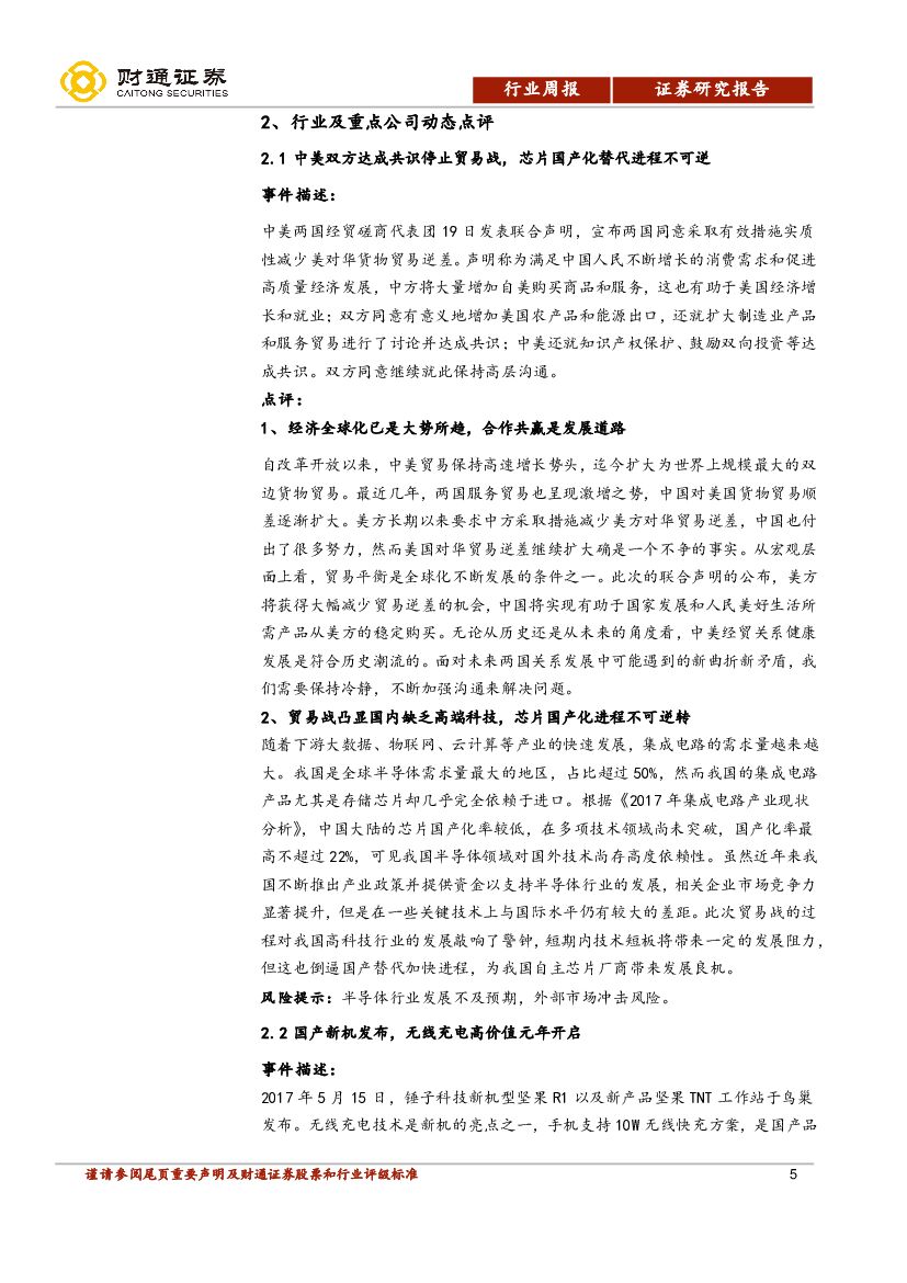 财通证券:电子行业周报:中美两国宣布停止贸易战,芯片国产替代趋势不改.pdf