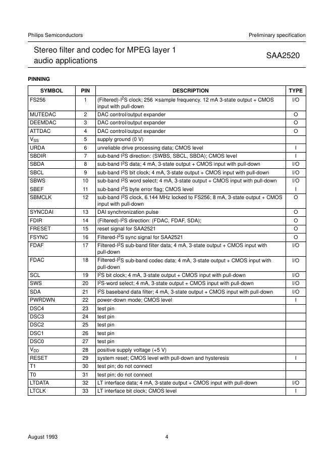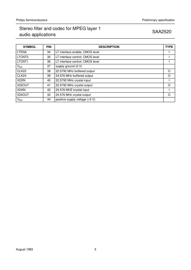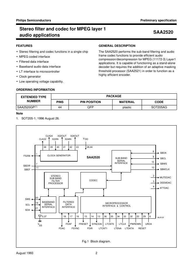 philips SAA2520 Stereo filter and codec for MPEG layer 1 audio applications 数据手册.pdf
