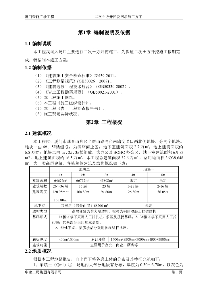 [厦门]二次土方放坡开挖及回填施工方案.doc