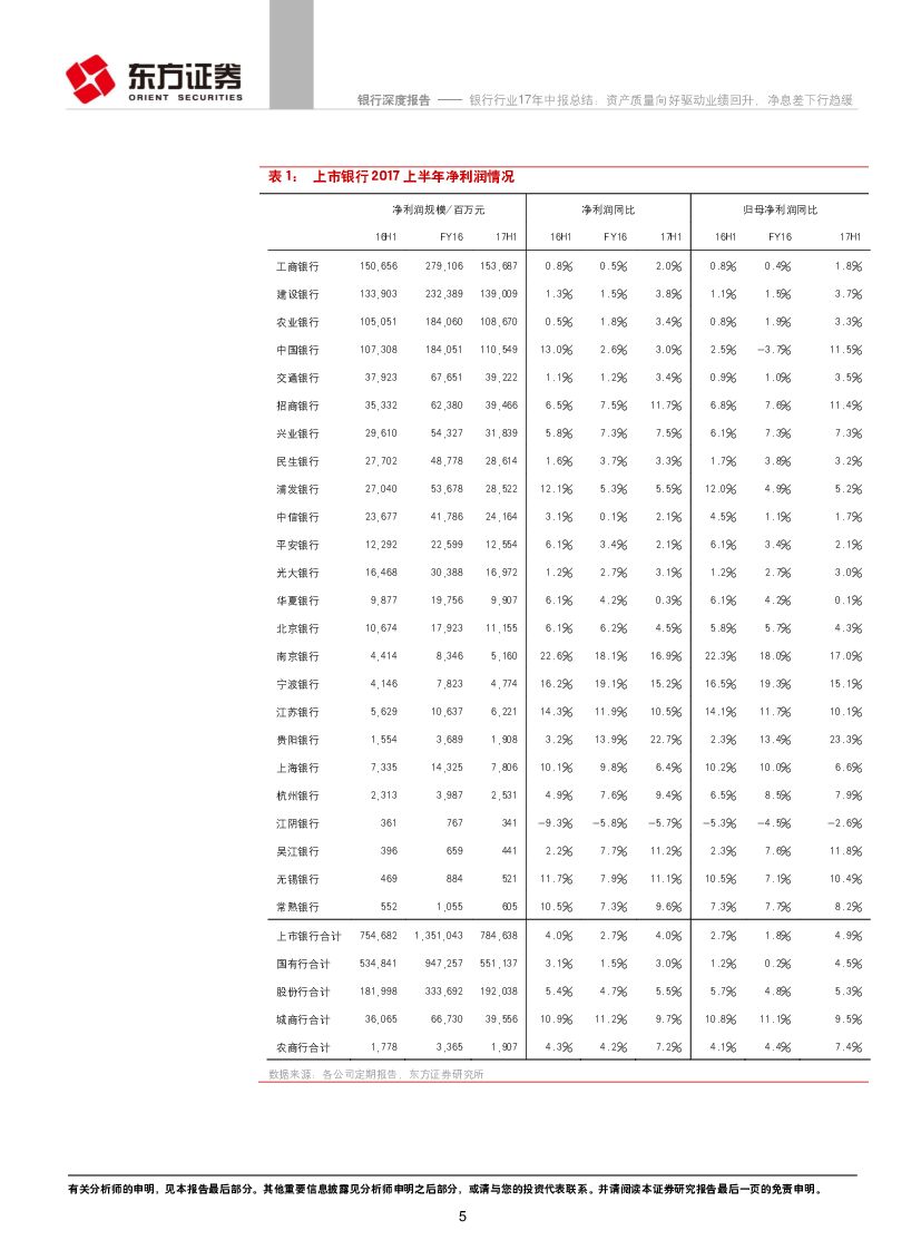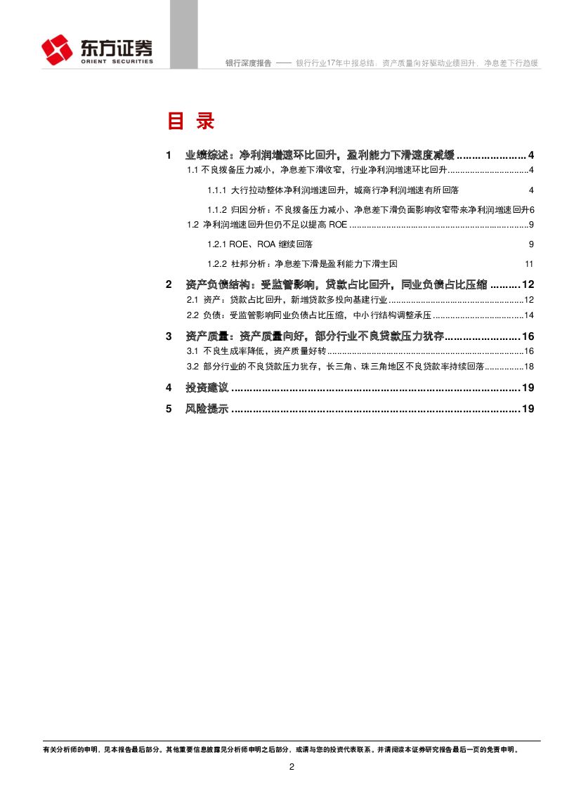 东方证券:银行行业17年中报总结:资产质量向好驱动业绩回升 净息差下行趋缓.pdf