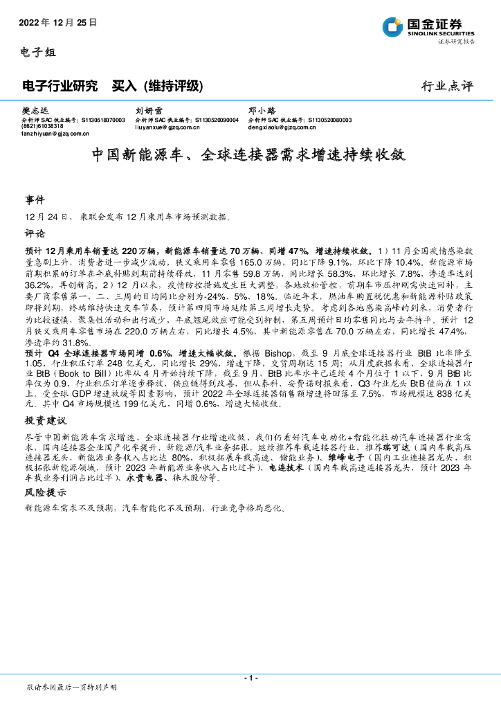 国金证券:电子行业研究:中国新能源车、全球连接器需求增速持续收敛.pdf