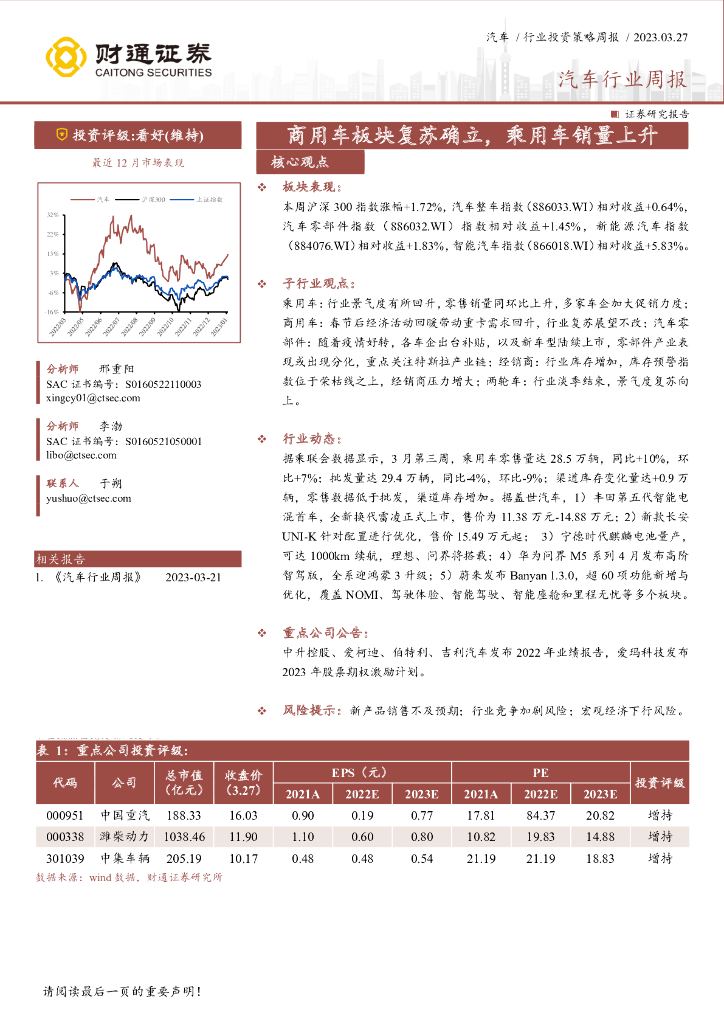 财通证券:汽车行业周报:商用车板块复苏确立,乘用车销量上升.pdf