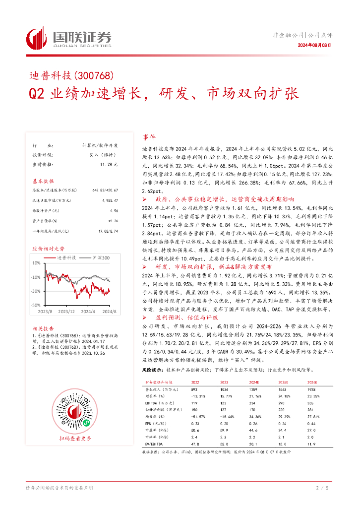 国联证券:迪普科技(300768)-Q2业绩加速增长,研发、市场双向扩张.pdf
