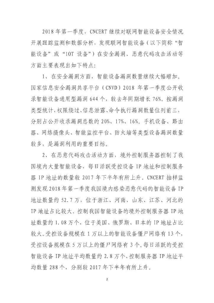 国家计算机网络应急中心:我国联网智能设备安全情况报告(2018年第一季度).pdf