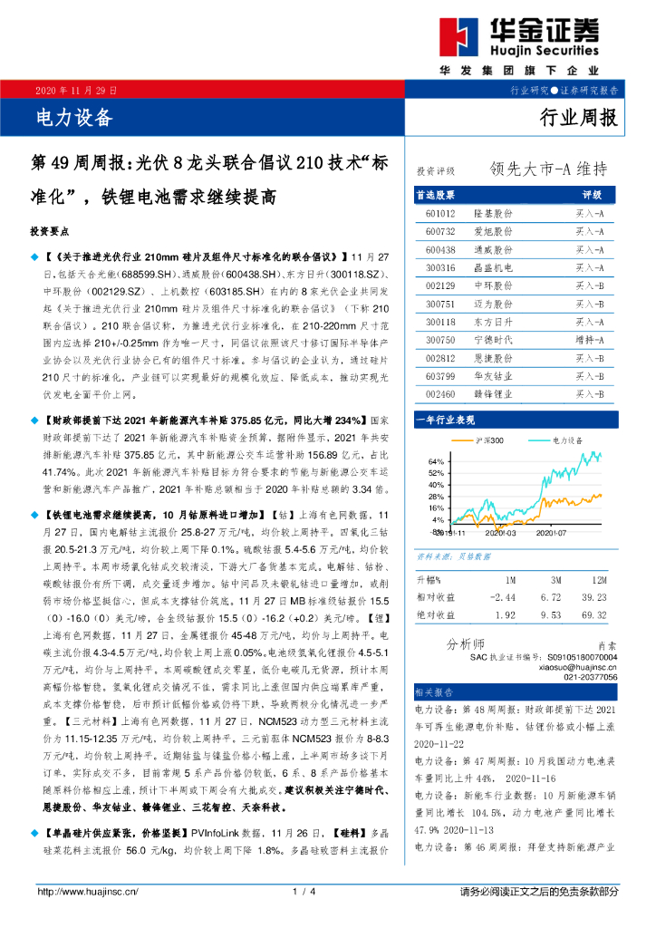 华金证券:电力设备第49周周报:光伏8龙头联合倡议210技术“标准化”,铁锂电池需求继续提高.pdf