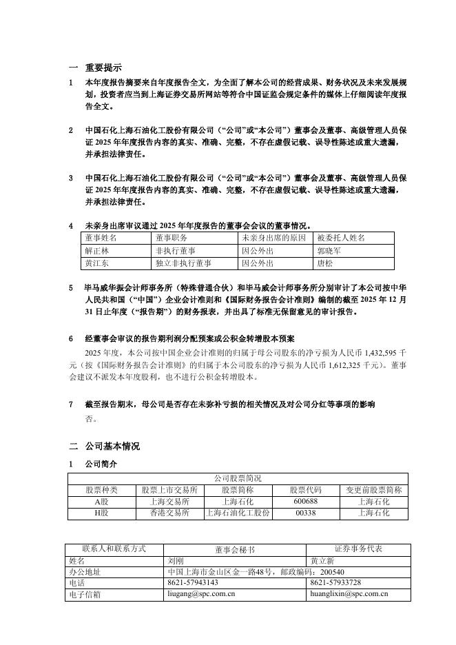600688-上海石化:上海石化2025年年度报告摘要.pdf