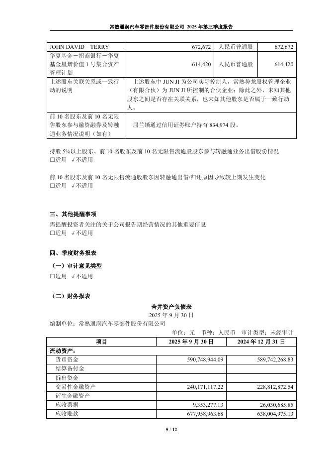 603201-常润股份:常熟通润汽车零部件股份有限公司2025年第三季度报告.pdf