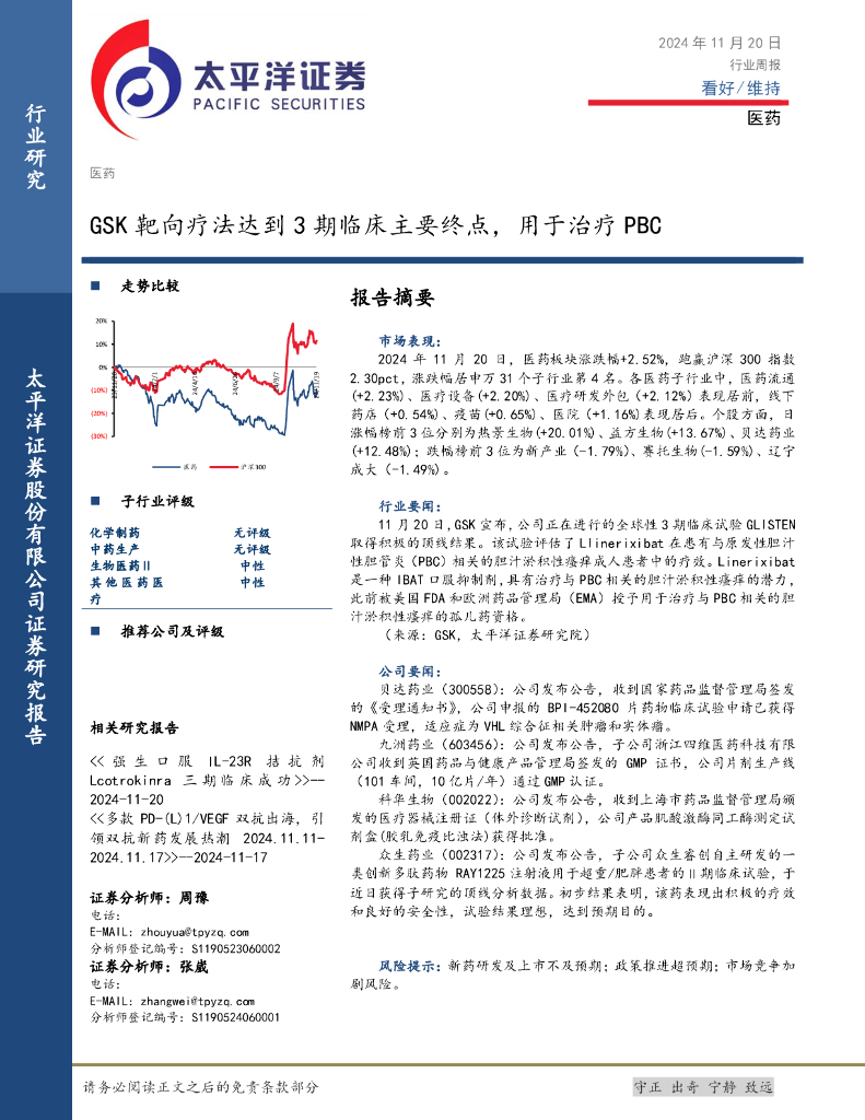 太平洋证券:医药行业周报:GSK靶向疗法达到3期临床主要终点,用于治疗PBC.pdf