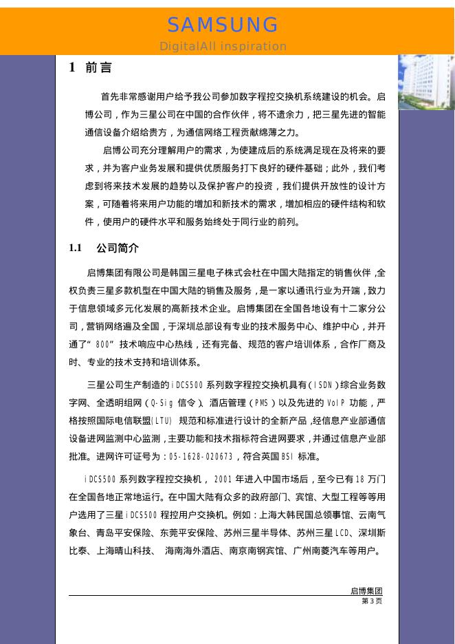 启博集团 三星IDCS500数字程控交换机 方案书.pdf