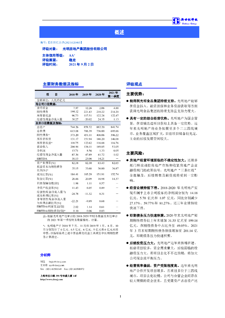 新世纪:光明房地产集团股份有限公司主体信用评级报告.pdf