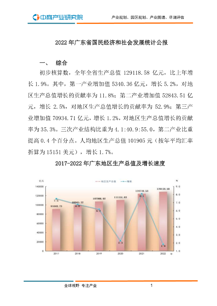 中商产业研究院:2022年广东省国民经济和社会发展统计公报.pdf
