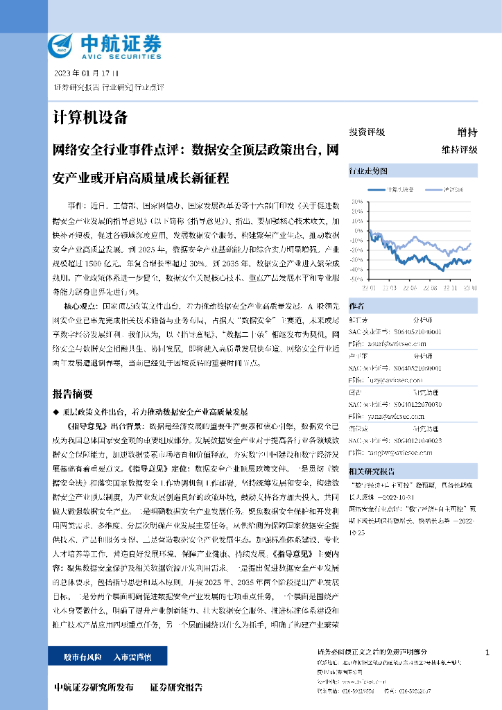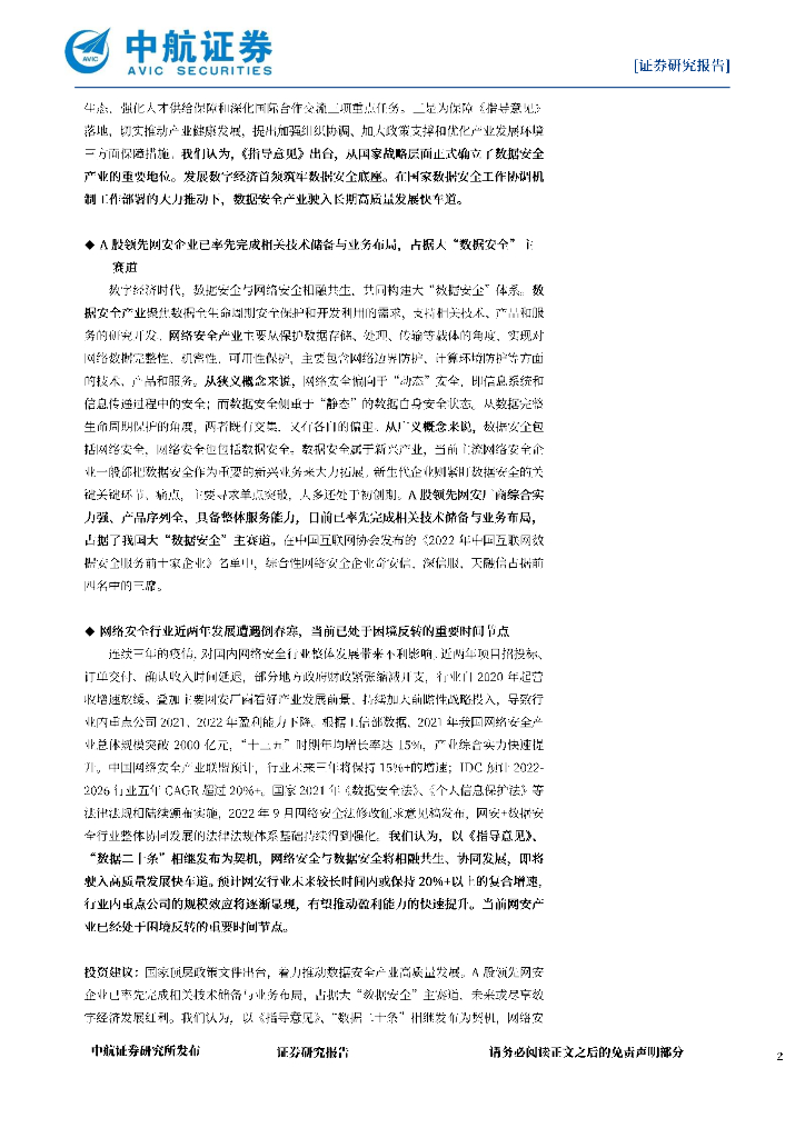 中航证券:网络安全行业事件点评:数据安全顶层政策出台,网安产业或开启高质量成长新征程.pdf