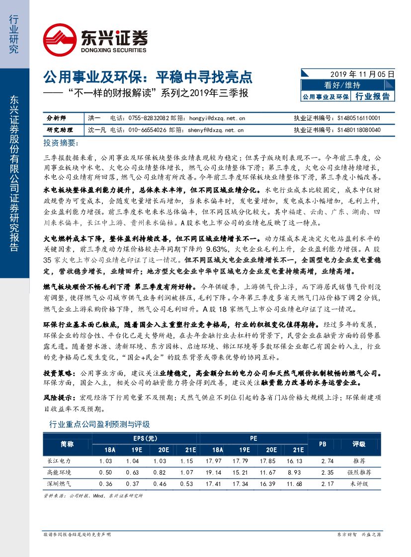 东兴证券:“不一样的财报解读”系列之2019年三季报:公用事业及环保行业报告:平稳中寻找亮点.pdf
