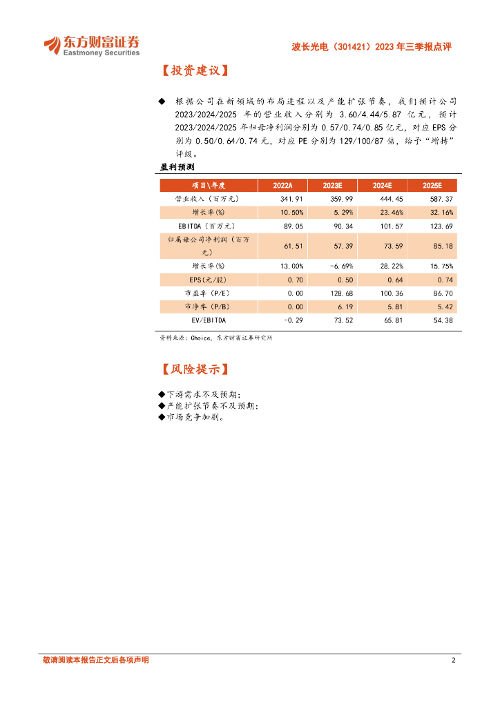 东方财富证券:波长光电(301421)-2023年三季报点评:积极布局半导体、消费电子等领域,扩产保证长期增长动能.pdf