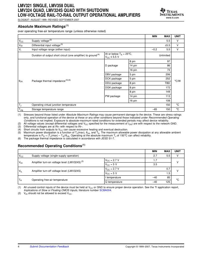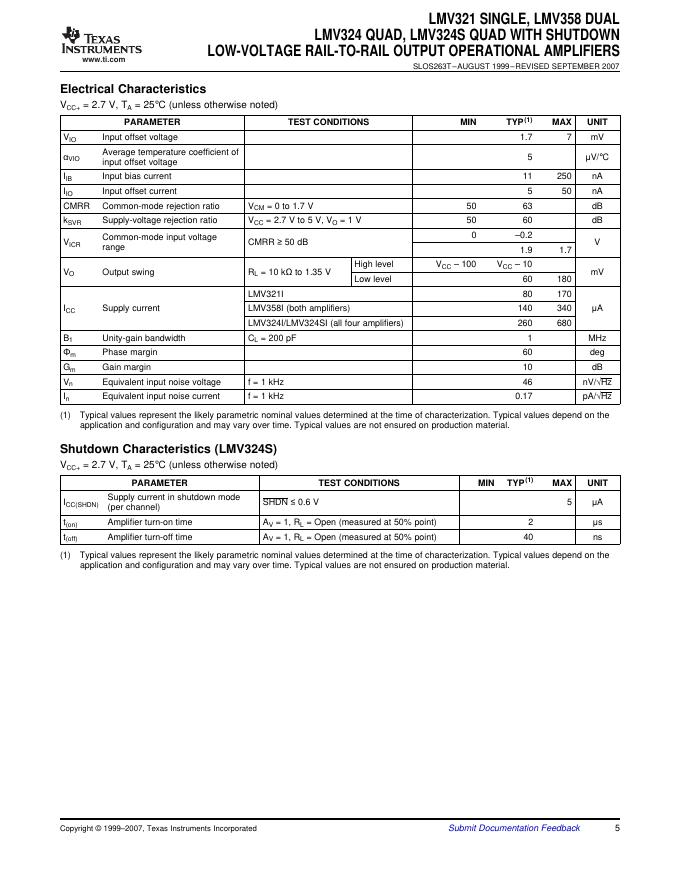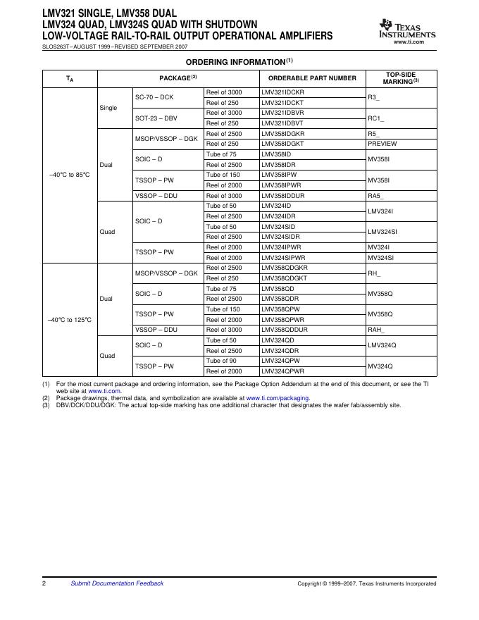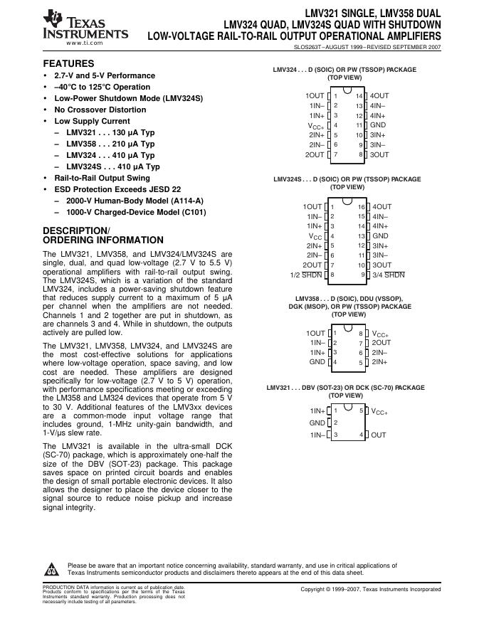TEXAS INSTRUMENTS -LMV321 SINGLE, LMV358 DUAL LMV324 QUAD, LMV324S QUAD WITH SHUTDOWN LOW-VOLTAGE RAIL-TO-RAIL OUTPUT OPERATIONAL AMPLIFIERS 数据手册.pdf