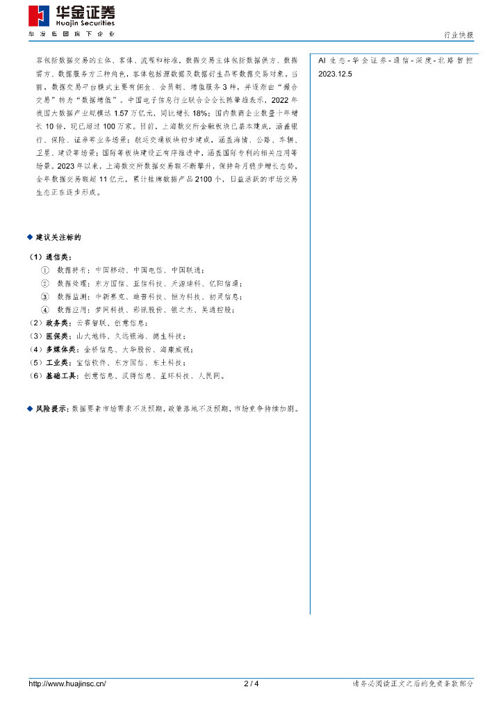 华金证券:通信:数据要素X三年计划启动,释放行业数据价值.pdf