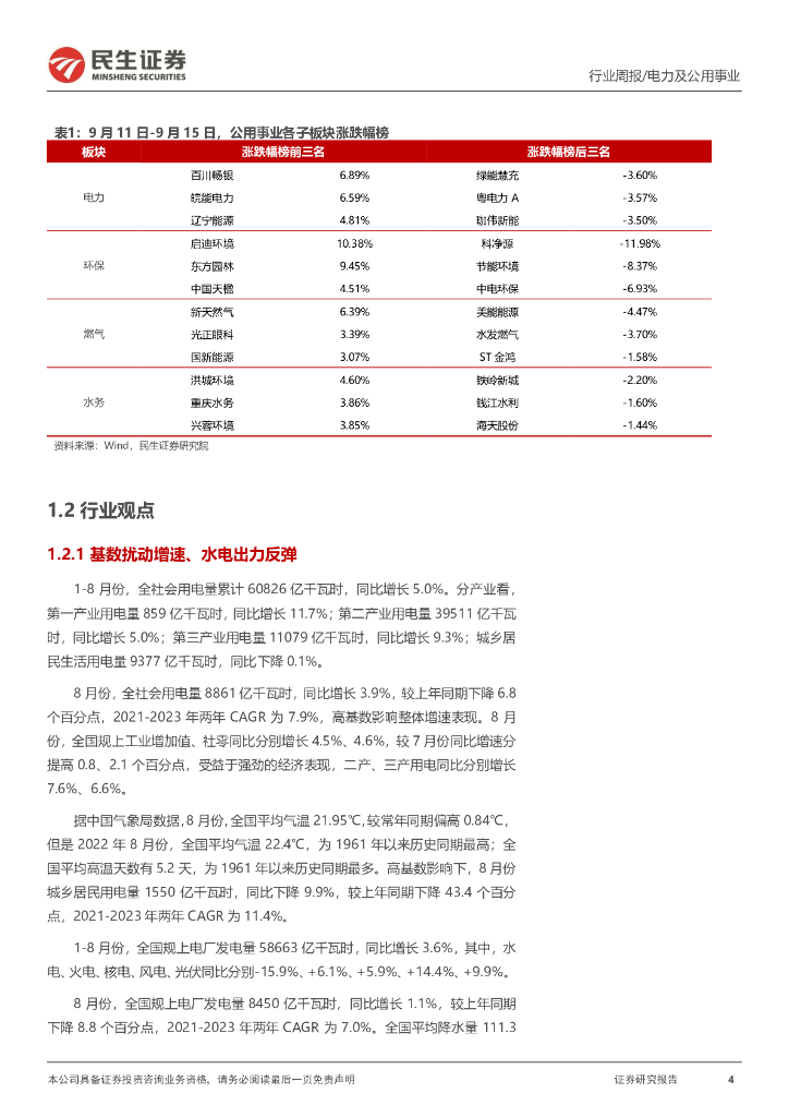 民生证券:公用事业行业周报(2023年第36周):基数扰动增速、水电出力反弹,土壤修复迎新机.pdf