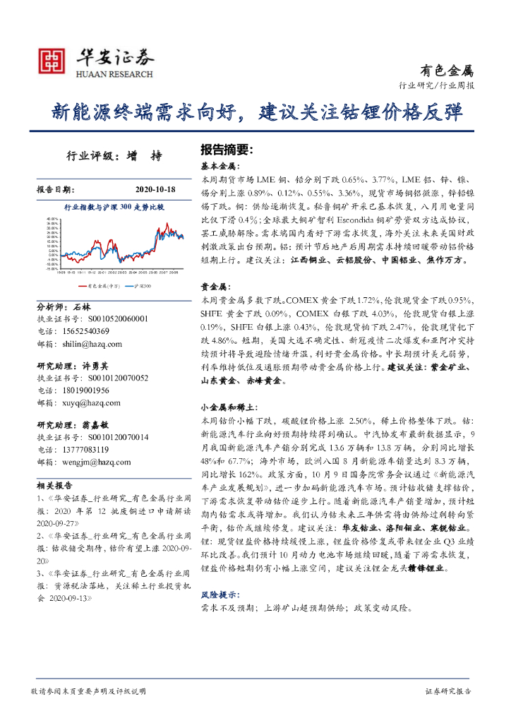 华安证券:有色金属行业周报:新能源终端需求向好,建议关注钴锂价格反弹.pdf