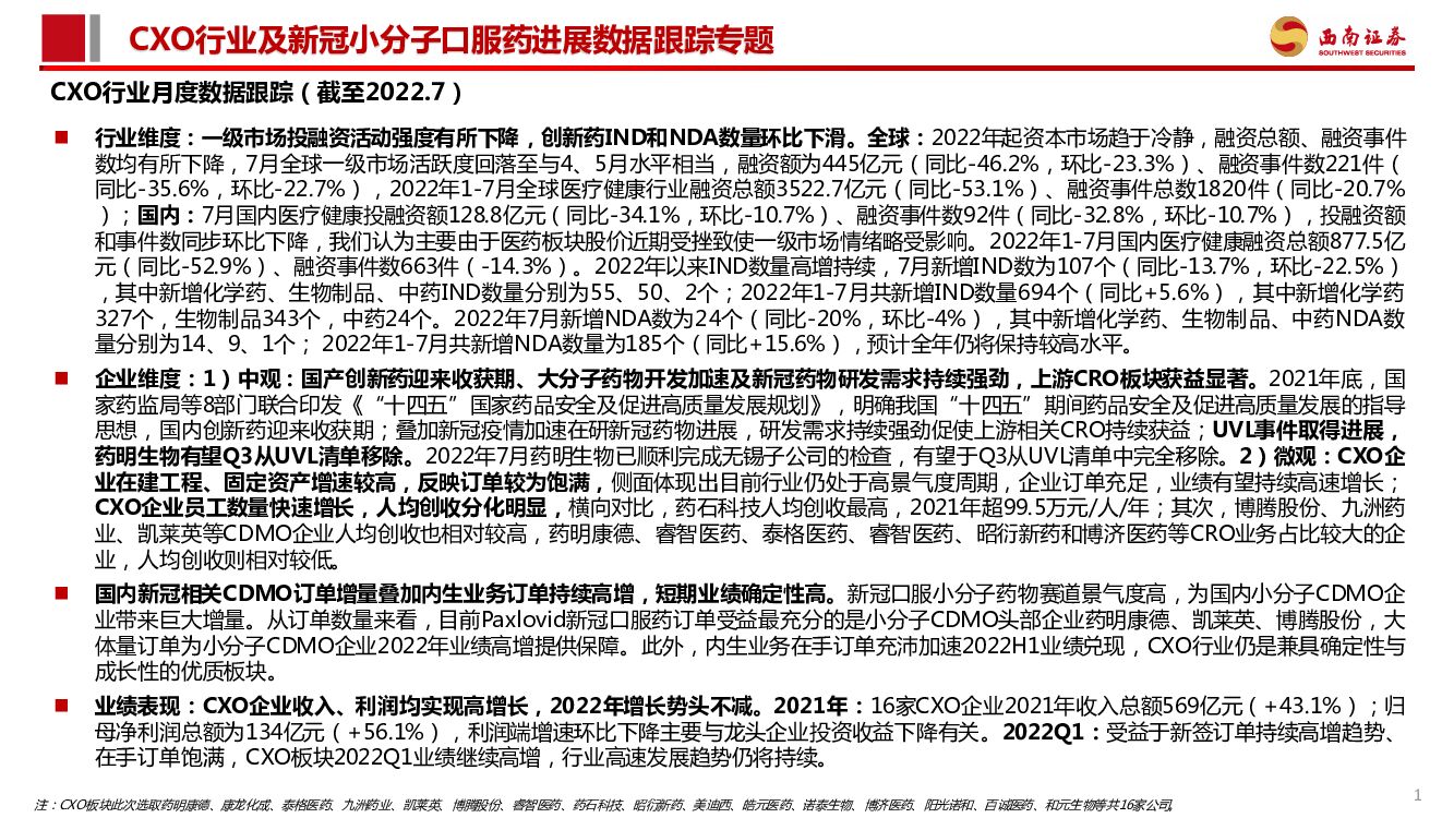 西南证券:CXO行业及新冠小分子口服药进展数据跟踪.pdf