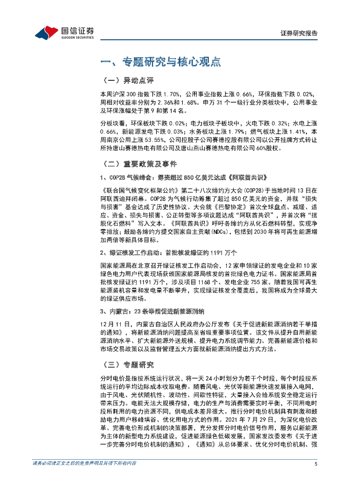国信证券:公用环保202312第3期:绿证核发启动,各地峰谷电价政策梳理.pdf
