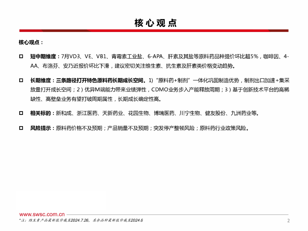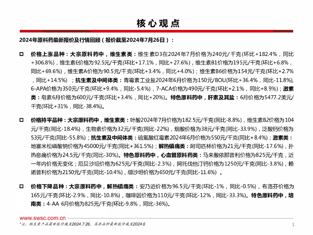 西南证券:原料药板块2024Q2跟踪报告:VD3、VE等持续涨价,关注维生素提价持续性.pdf