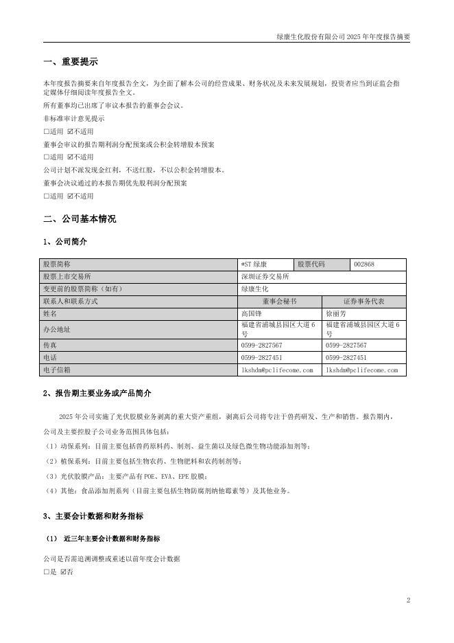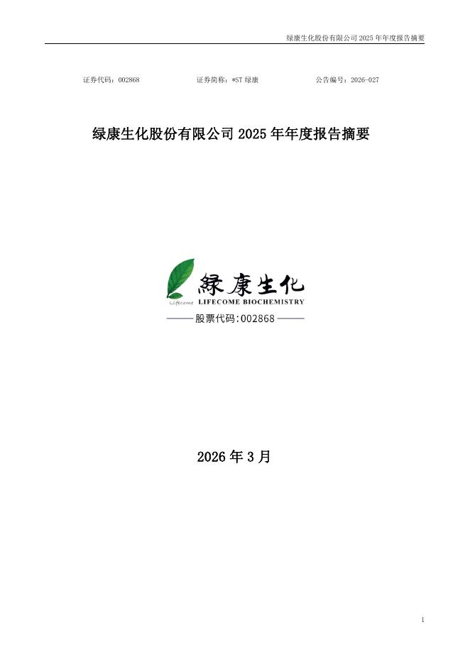 002868-*ST绿康:2025年年度报告摘要.pdf
