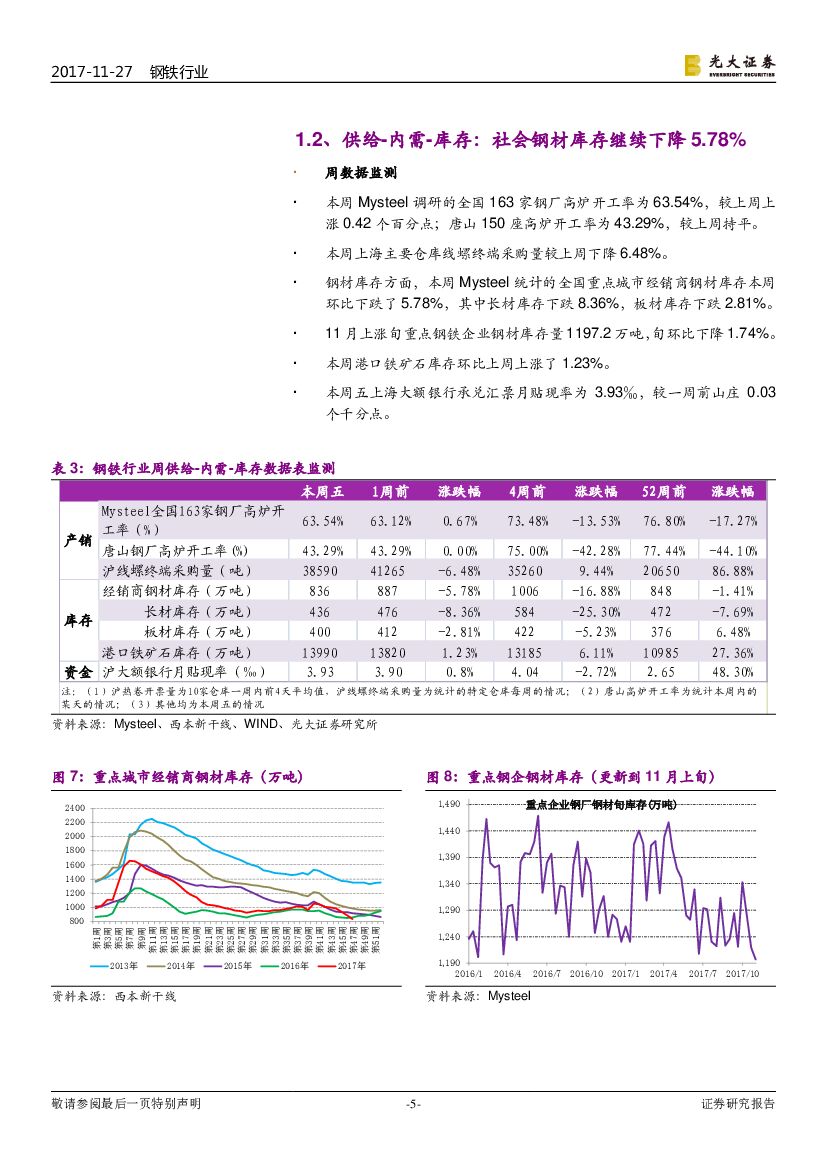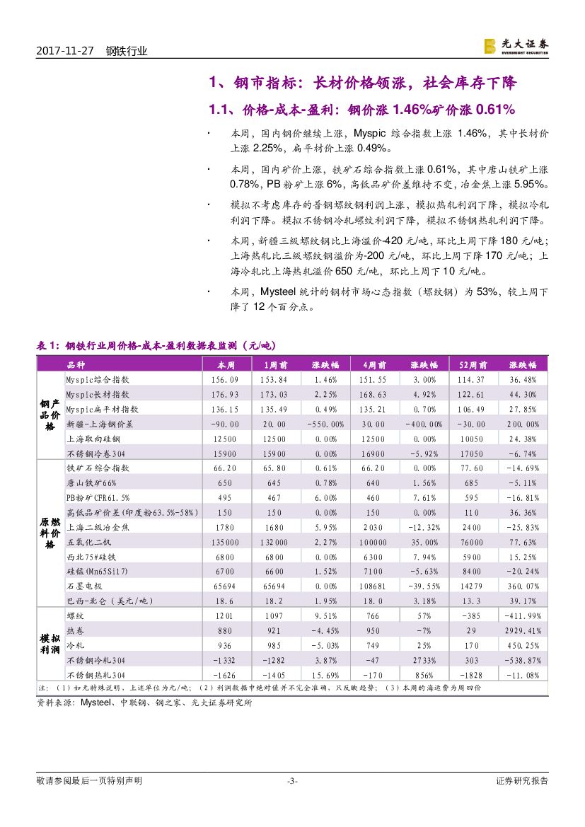 光大证券:钢铁行业周报:钢材社会库存创七年新低,模拟的钢厂利润创十年新高.pdf
