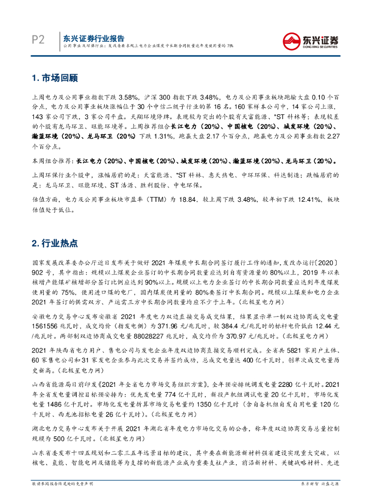 东兴证券:公用事业及环保行业:发改委要求规上电力企业煤炭中长期合同数量达年度使用量的75%.pdf