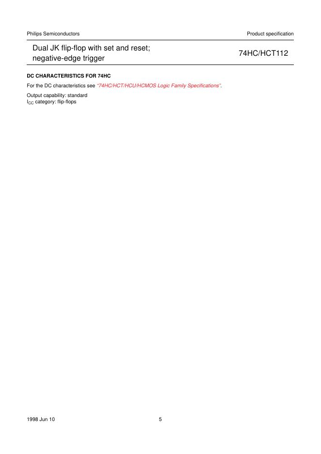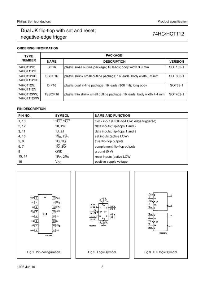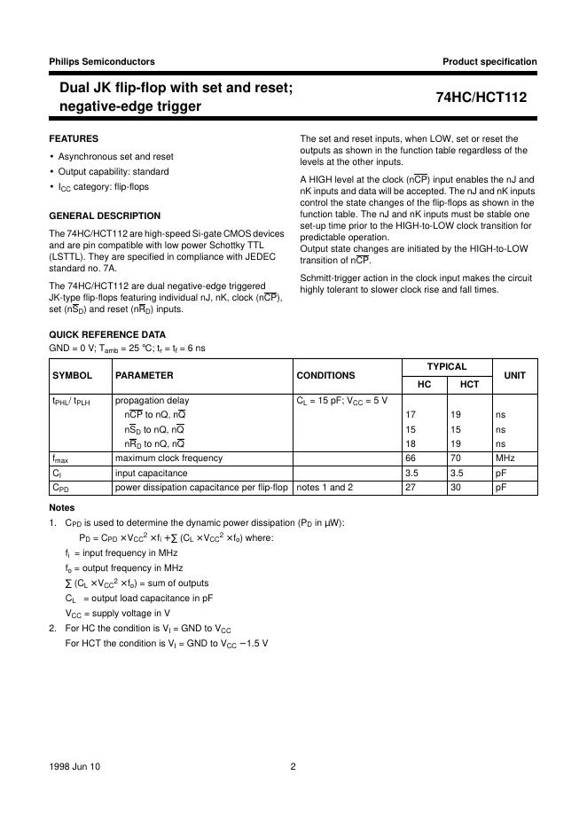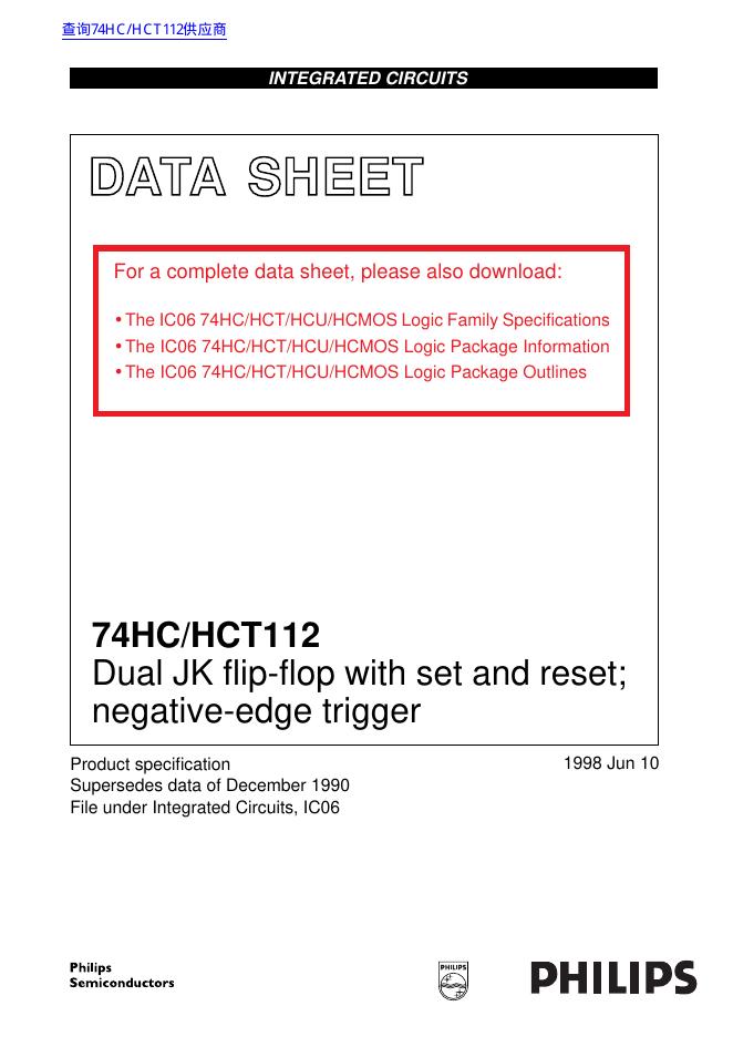 PHILIPS 74HC/HCT112 Dual JK flip-flop with set and reset; negative-edge trigger 数据手册.pdf