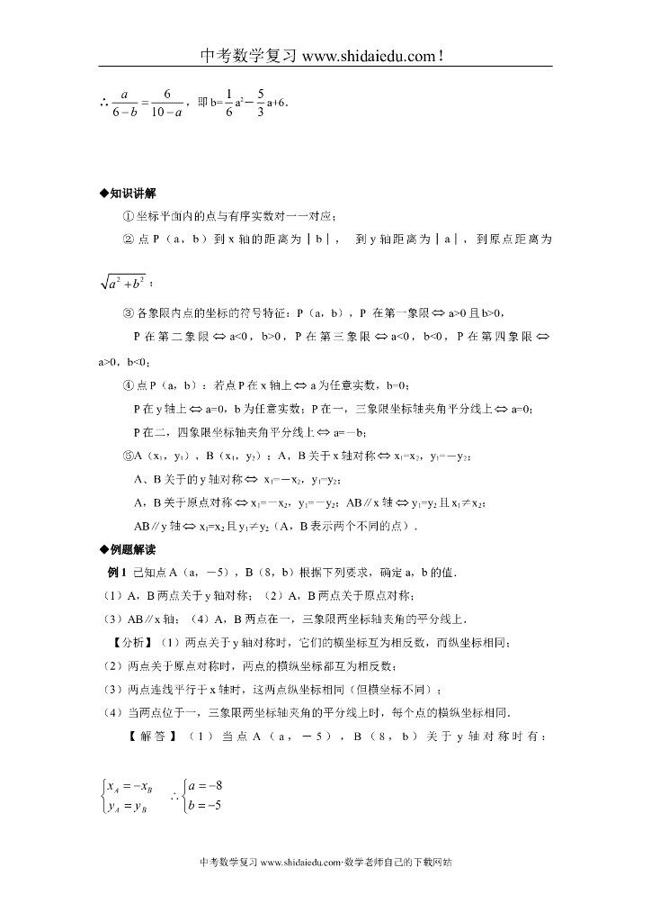 平面直角坐标系中考数学复习知识讲解-例题解析-强化训练.doc