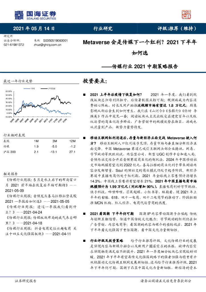 国海证券:传媒行业2021中期策略报告:Metaverse会是传媒下一个红利?2021下半年如何选.pdf